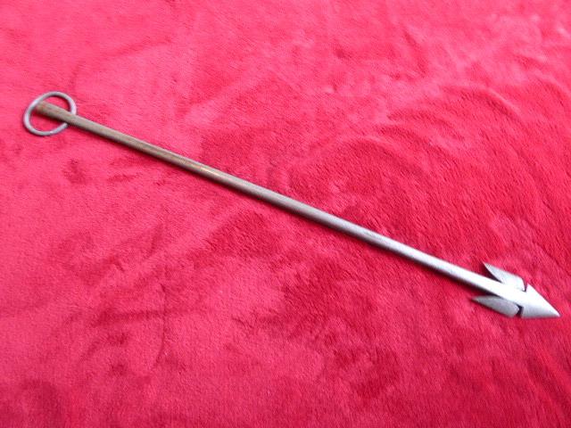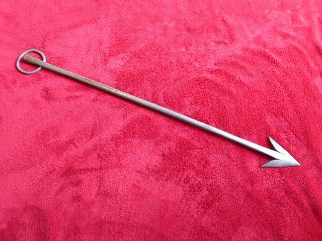 The harpoon measures 25.5” (64.7cm) long and the approximate diameter of the cylindrical knob is 0.67” (1.7cm).