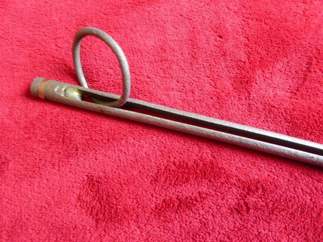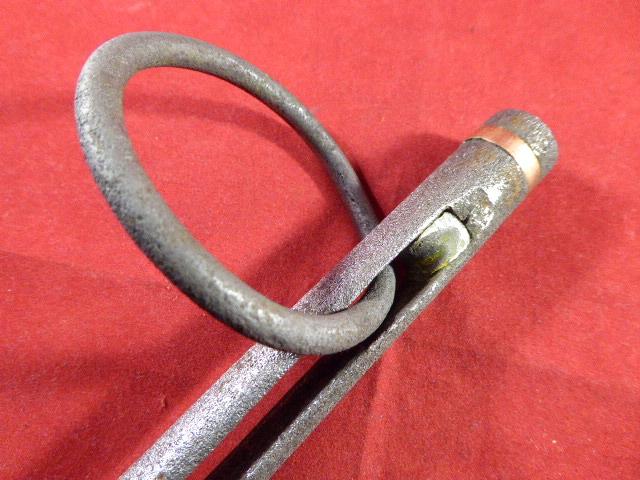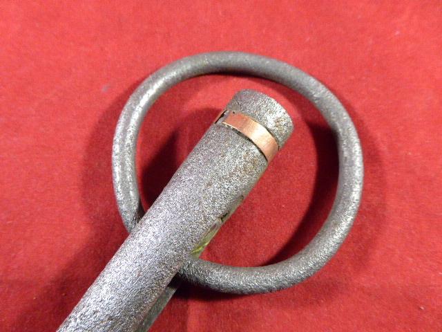 The harpoon's shank terminates in a cylindrical knob that is fitted with a copper collar. This was designed to fit snugly into the guns barrel with the iron ring moved all the way up to the arrowhead.