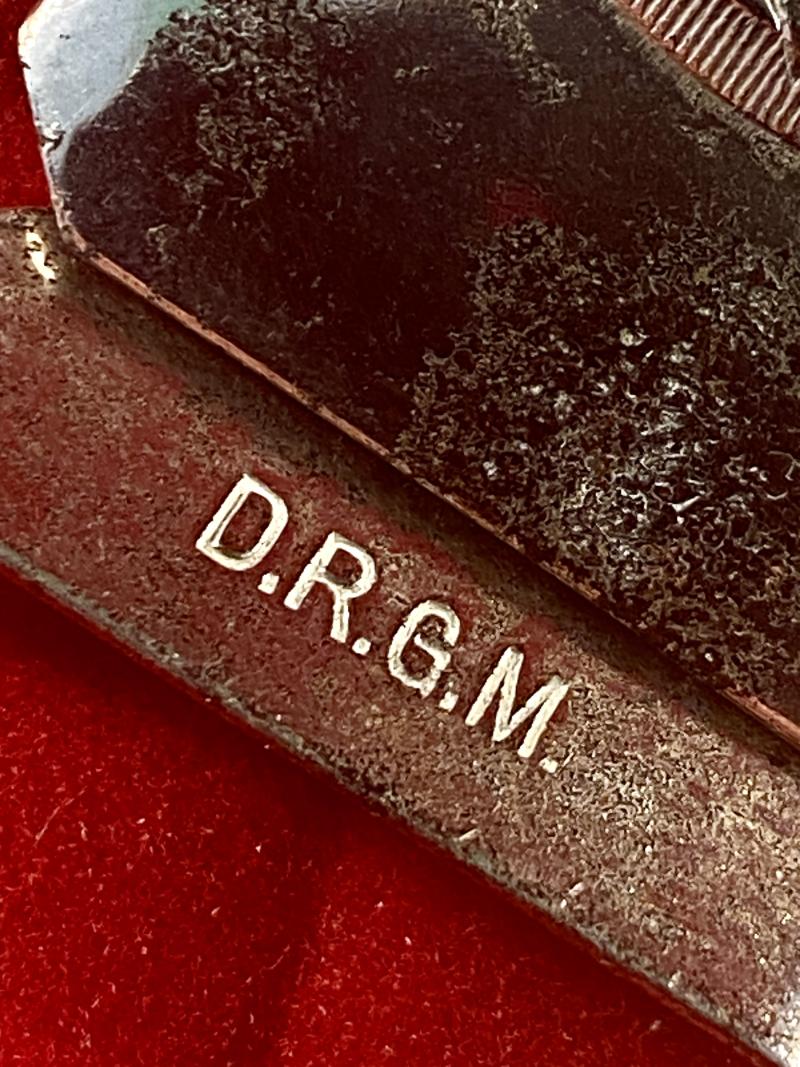 It comes with its original period 'fastening/locking-device' still firmly in place (as can be seen on the pictures). The top section is stamped with D.R.G.M., the German patent-pending-designation mark.