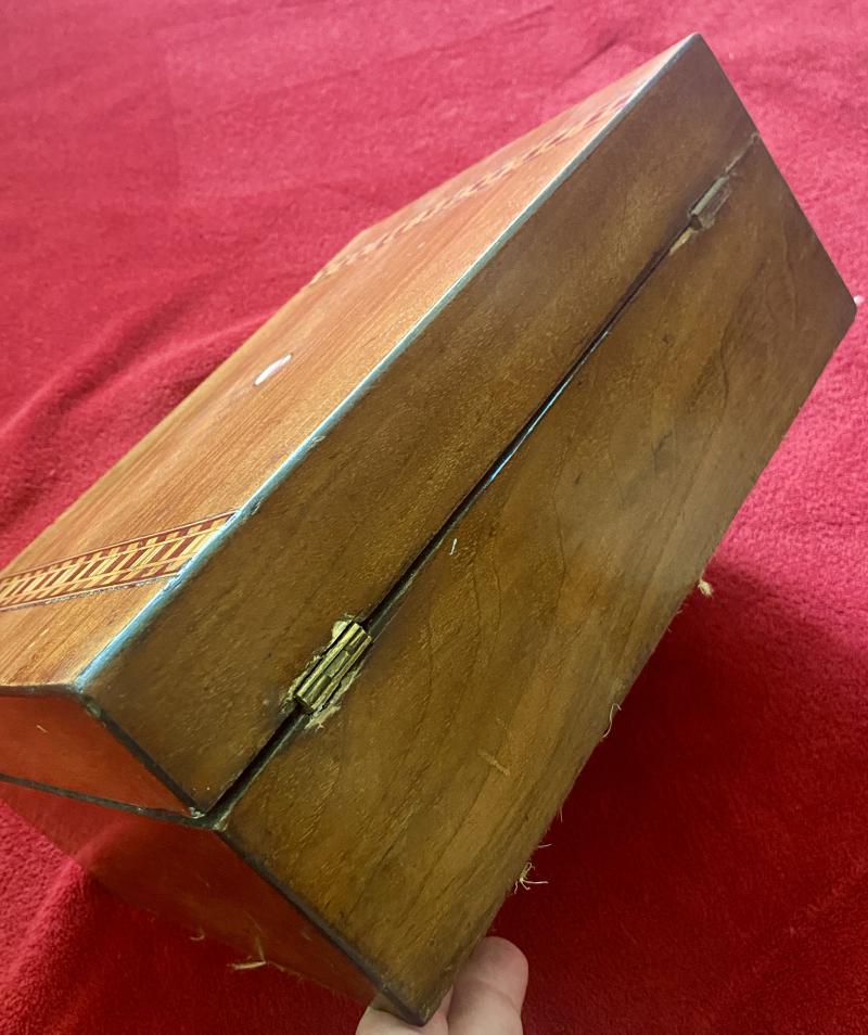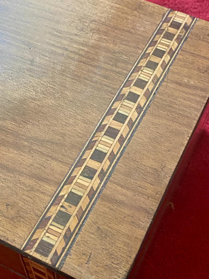 Extra Photos of Victorian Walnut Veneer Box with Marquetry Banding Containing a Beautiful Display of Sea Shells - 52128