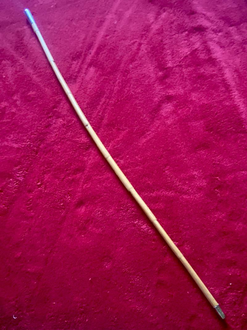 The long cane section is in excellent condition but now has a gentle curve to it, as shown in my photos.
