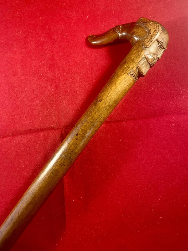 Here on offer is an original antique olive wood Greek KEPKYPA (Corfu) walking stick with carved grip depicting an elephant’s head and a bearded man’s head.