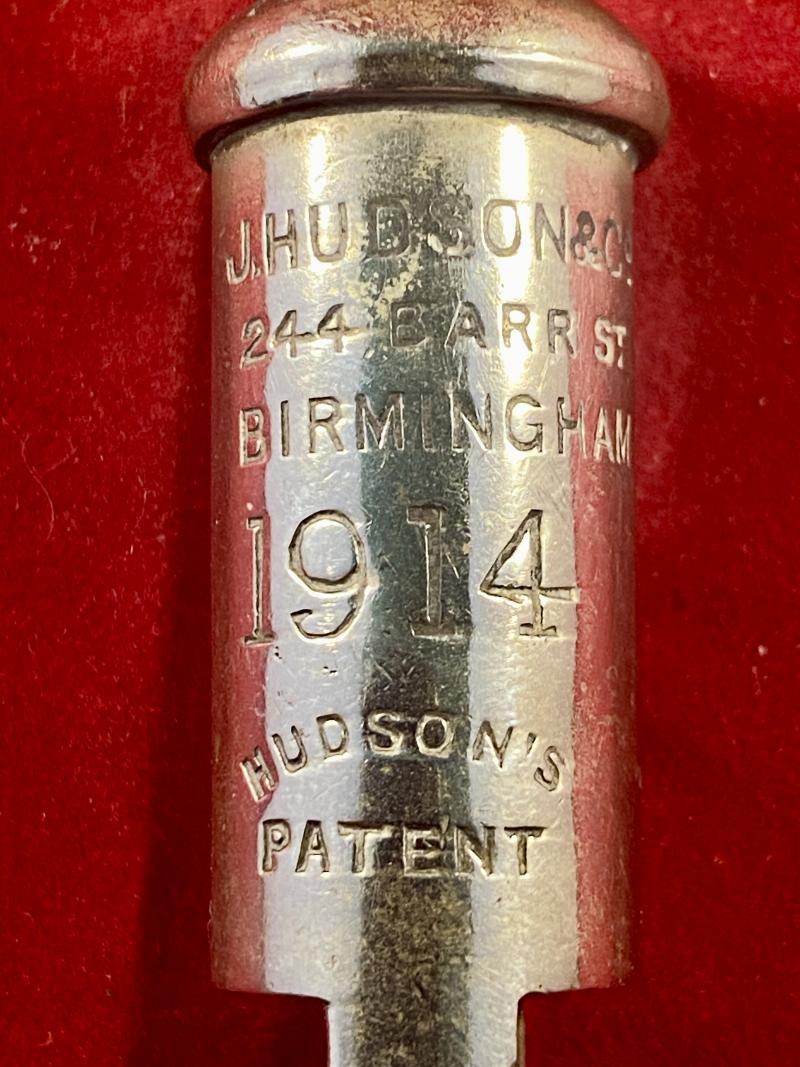 Genuine WW1 1914 British Military Officers Trench Whistle by J Hudson & Co. of Birmingham with Original Leather Strap