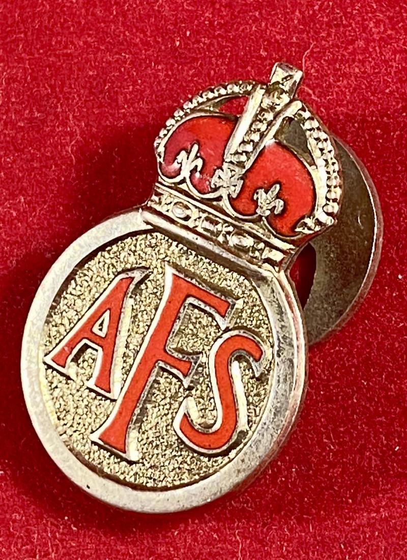 WW2 Period Auxiliary Fire Service AFS Officially Numbered Lapel Badge by H.W. Miller