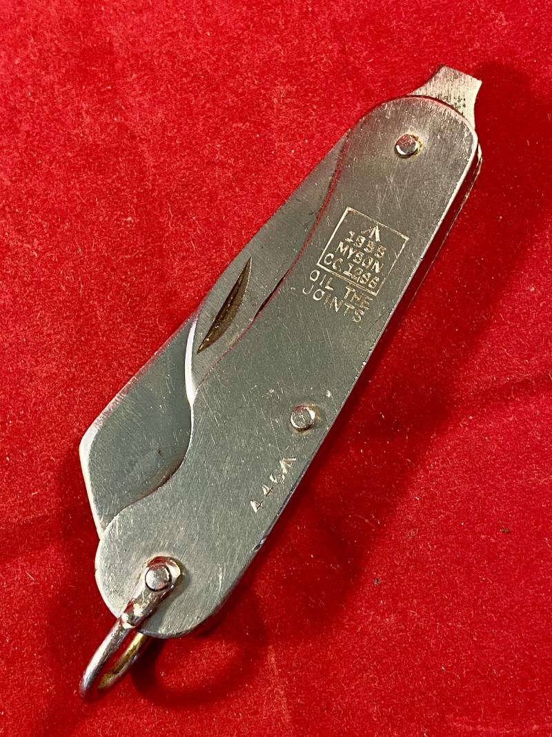British Military Folding Two-Piece Stainless Steel Clasp or Jack Knife Dated 1955 by C. Myers & Son Ltd Sheffield – Trade Mark MYSON
