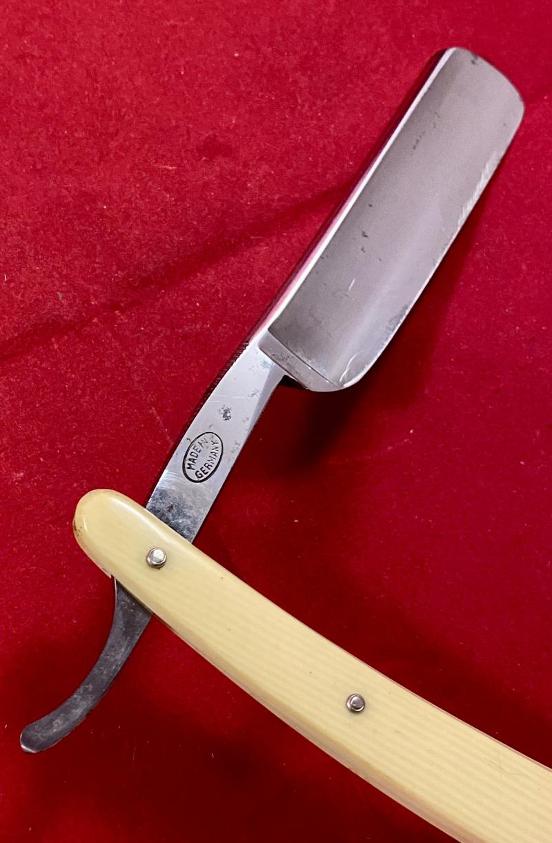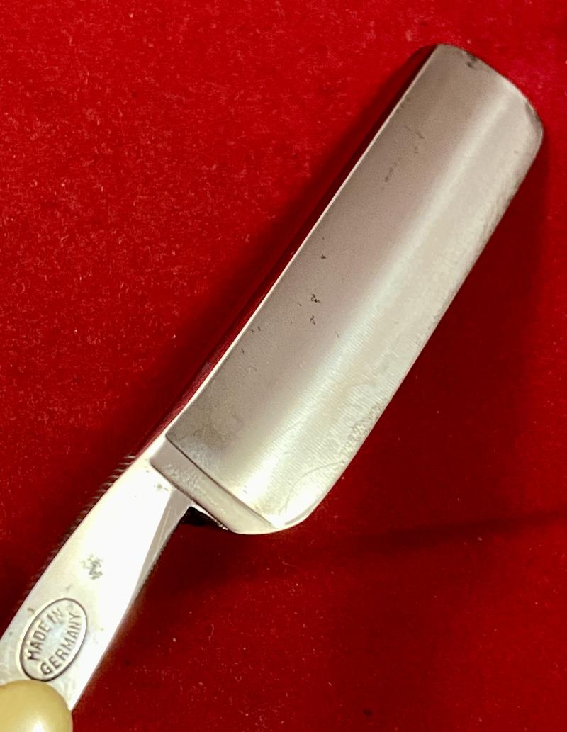 Here on offer is a fine antique German Paul Kohl FISHER SUPERB cutthroat razor with original case, circa 1925.