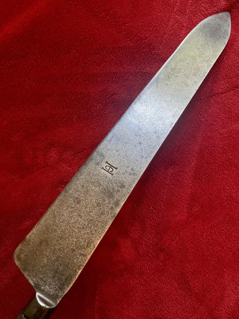 The impressive 18” spearpoint blade has been made from top quality steel and it remains straight and strong and now has age staining to the finish. It still retains a very good cutting edge.