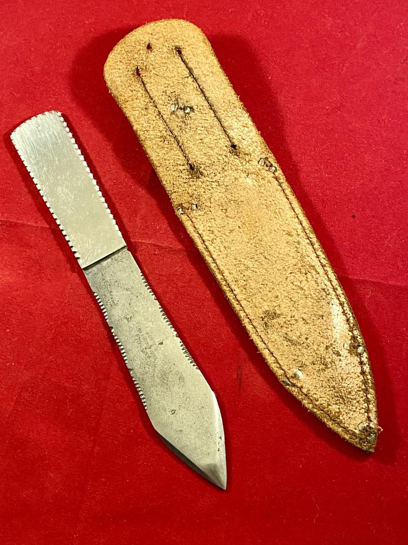 Unusual Antique TRUFLITE Throwing Knife by William Rodgers and Distributed by Marshalls of Glasgow with Leather Sheath