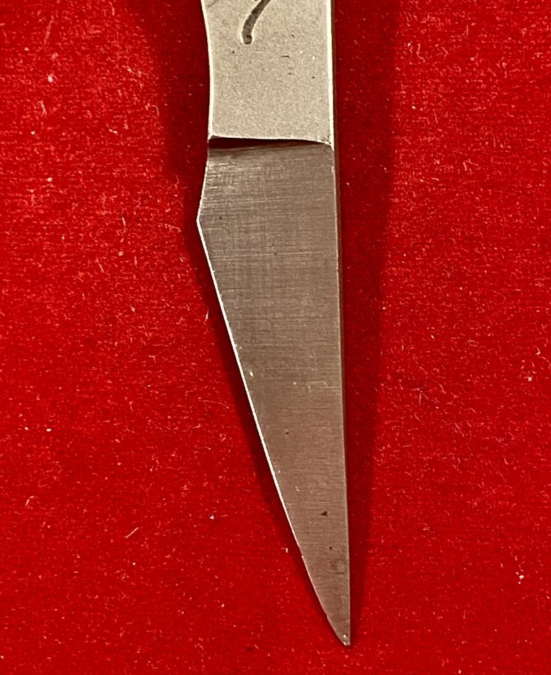 The knife measures 3” (7.5cm) long, without the loop and has a 1.45” (3.7cm) long cutting edge.