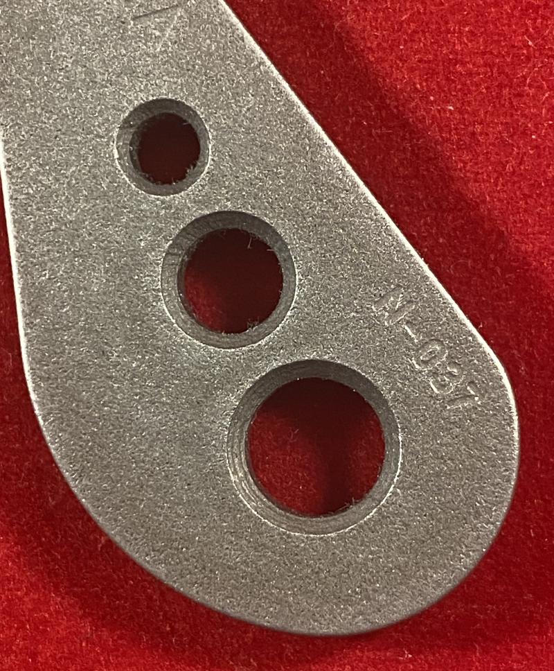 The flat grip/tang has satin/bead blasted finished and is stamped on one side with the maker’s details: