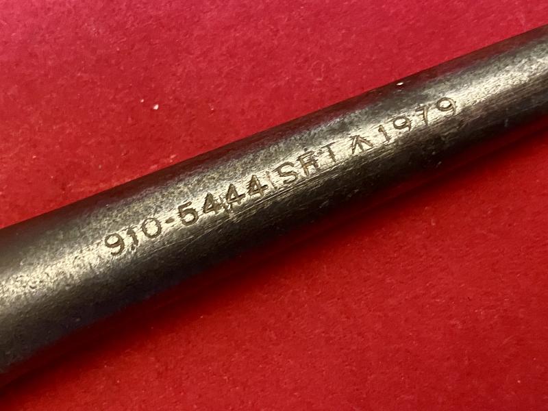 The heavy metal Marlin spike is 9” long and is stamped along the edge with a NATO reference number 910-5444 SF and an MOD broad arrow (crow’s foot) mark and the date of manufacture 1979.
