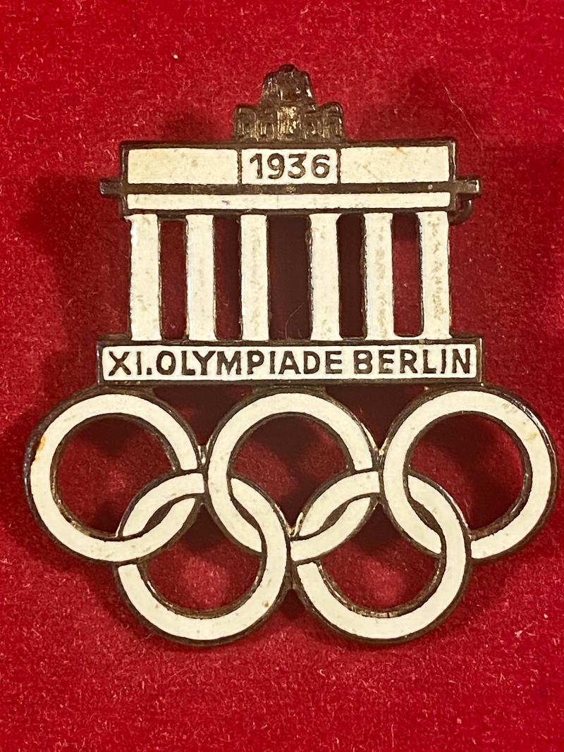 Here on offer is what I believe is a REPRODUCTION XI OLYMPIADE BERLIN 1936 Olympic Games Brandenburg Gate white enamel pin badge, which is actually a good copy of the original badge.