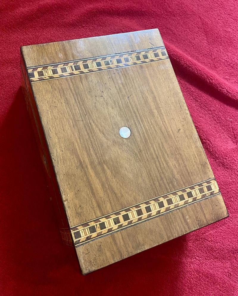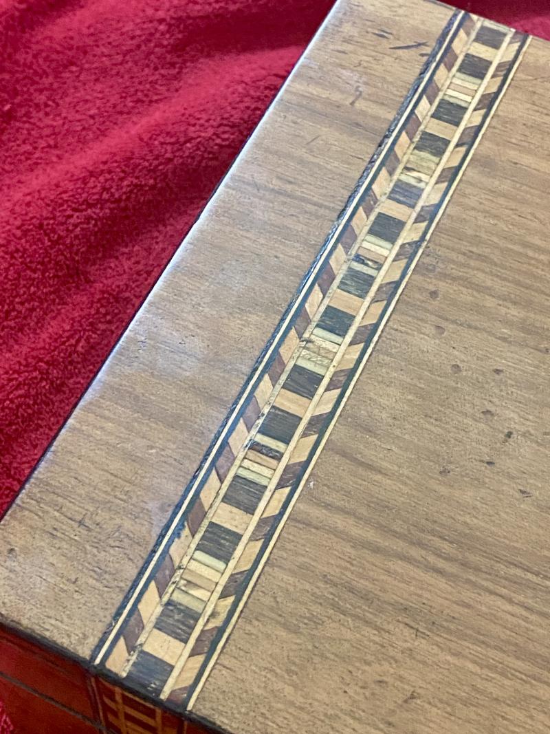 Extra Photos of Victorian Walnut Veneer Box with Marquetry Banding Containing a Beautiful Display of Sea Shells - 52128