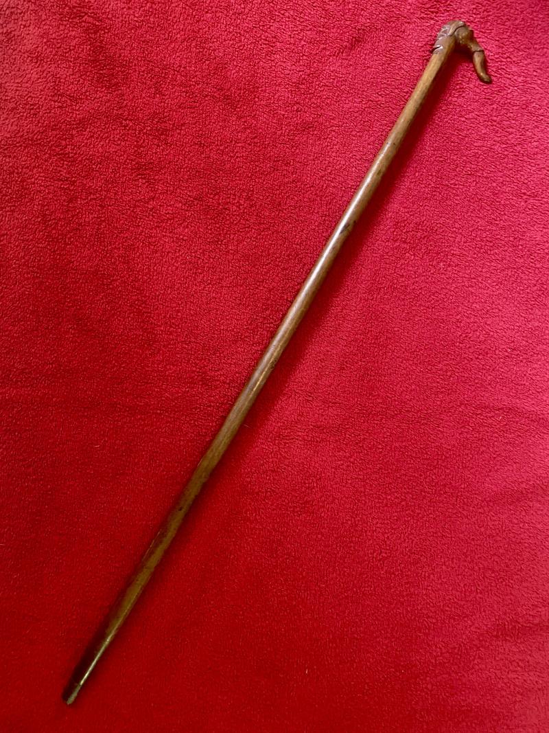 Here on offer is an original antique olive wood Greek KEPKYPA (Corfu) walking stick with carved grip depicting an elephant’s head and a bearded man’s head.