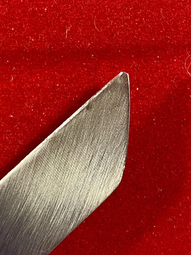 The blade shows very light signs of use and has lost the very tip of the blade, as shown in my photos.