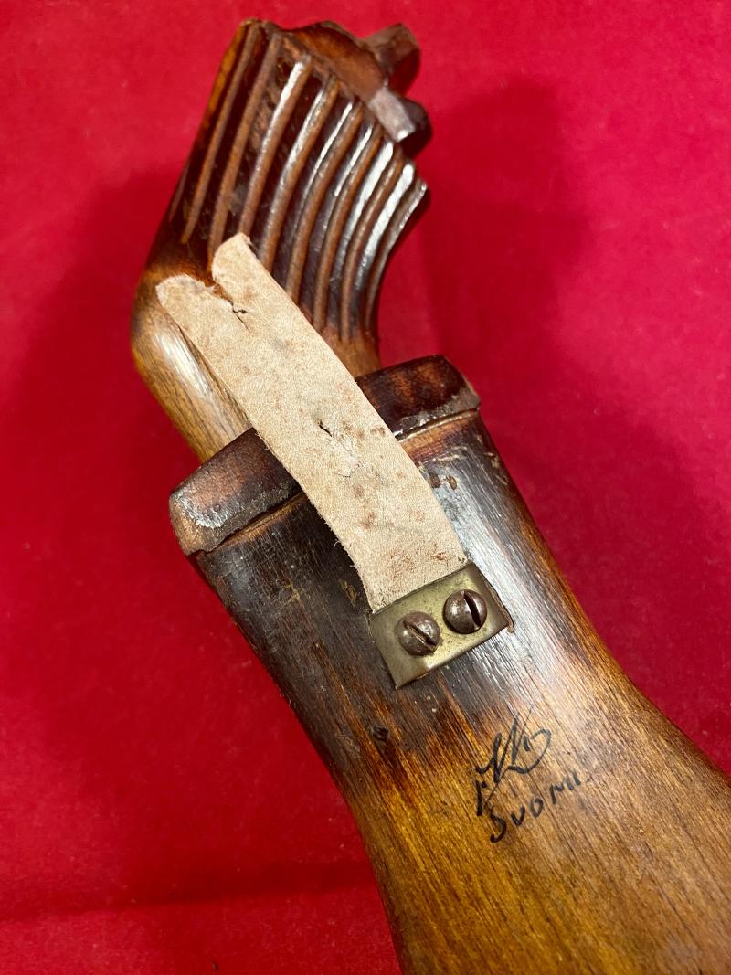 Also on the back are the carver's initials in ink, which I think read as T.W.R. who I can’t trace. Below these also in ink, is the word: SUOMI.