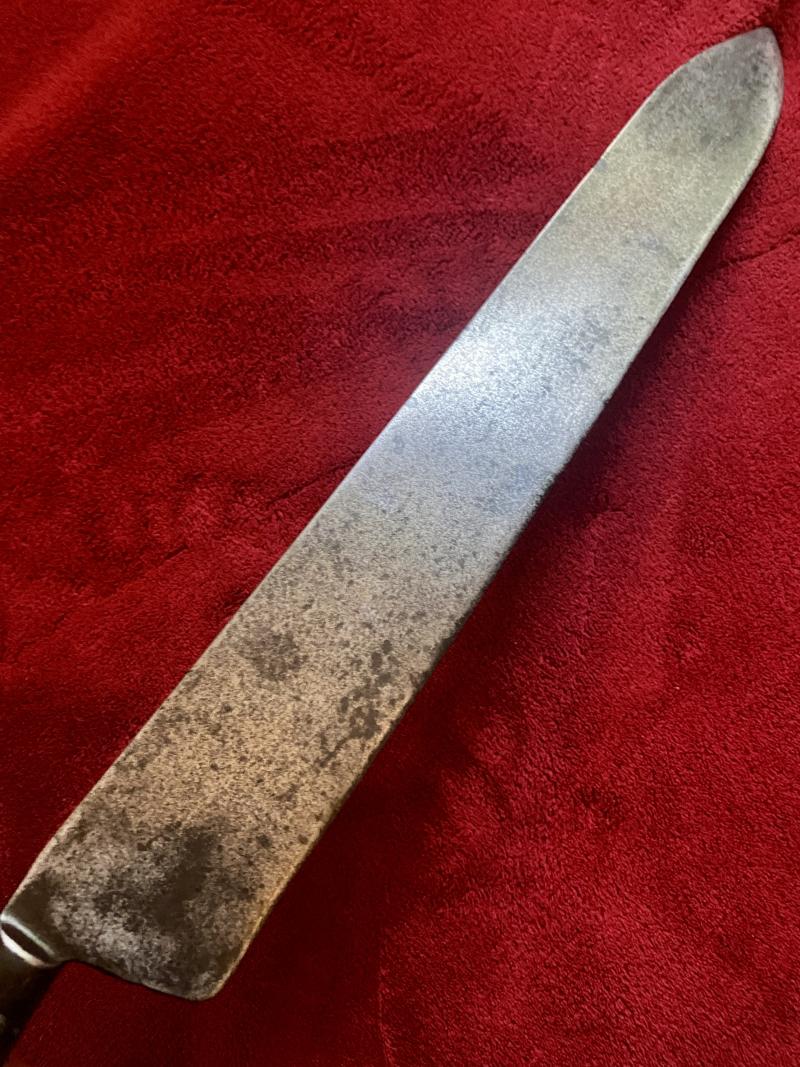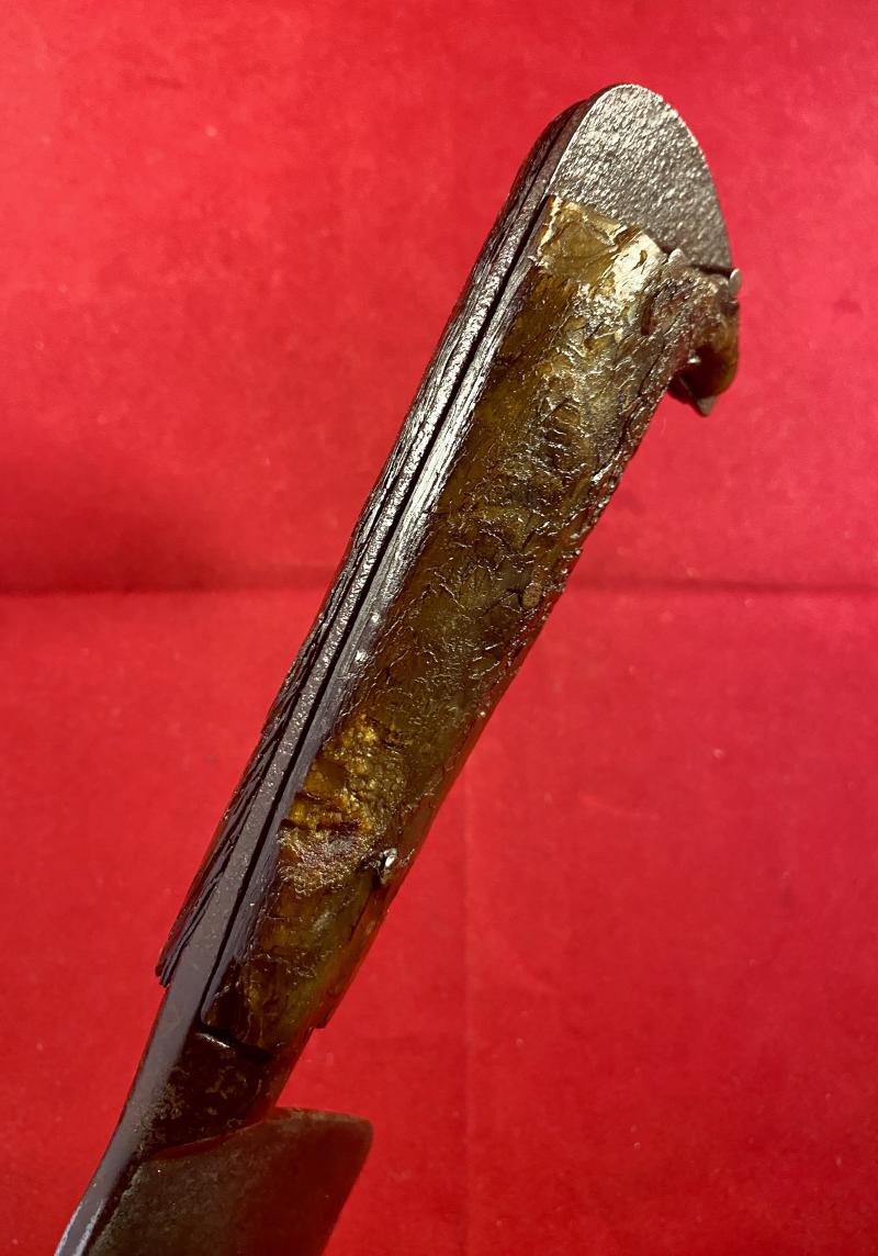 The impressive 18” spearpoint blade has been made from top quality steel and it remains straight and strong and now has age staining to the finish. It still retains a very good cutting edge.