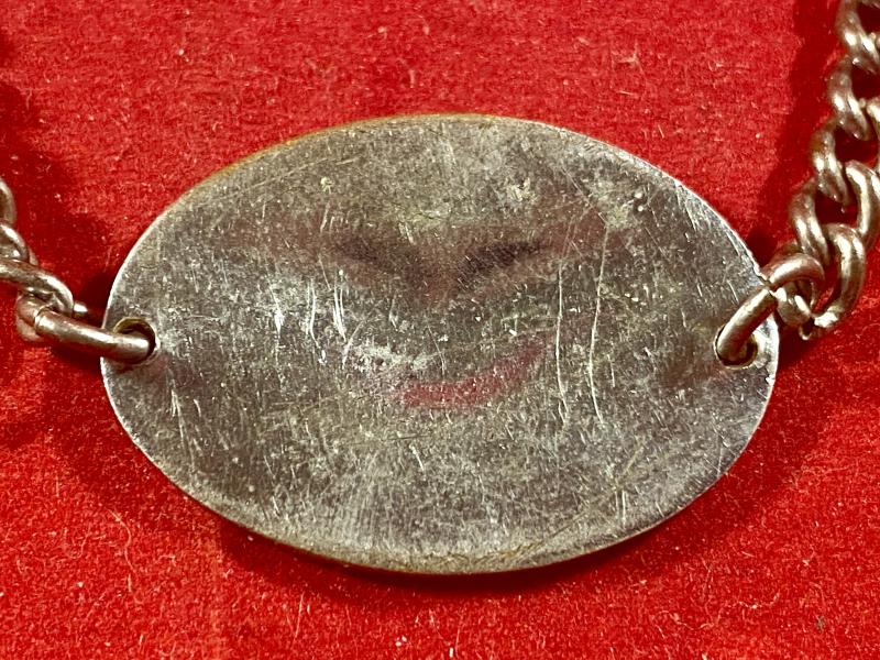The identity bracelet is in excellent condition with just some slight loss of plating the raised points.