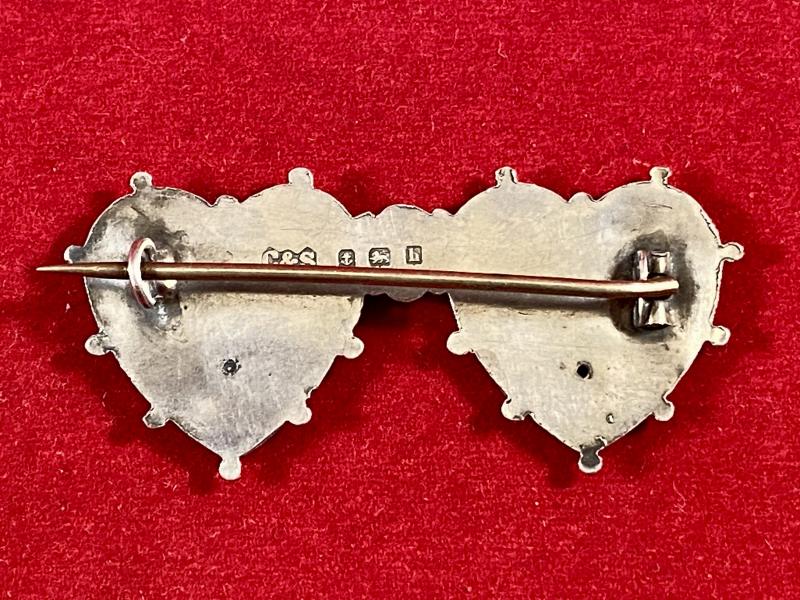 Pre WW1 Hallmarked Silver MIZPAH and Suffolk Regiment Double Heart Sweetheart Brooch by C&S - 1907