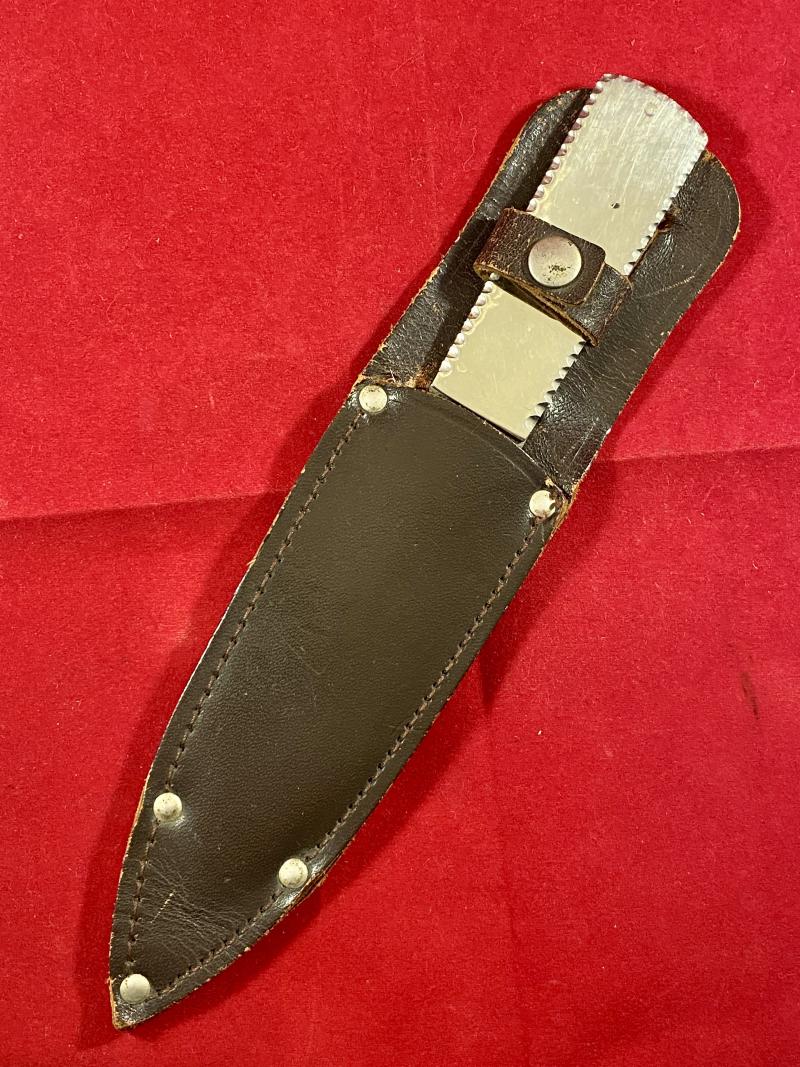 Unusual Antique TRUFLITE Throwing Knife by William Rodgers and Distributed by Marshalls of Glasgow with Leather Sheath