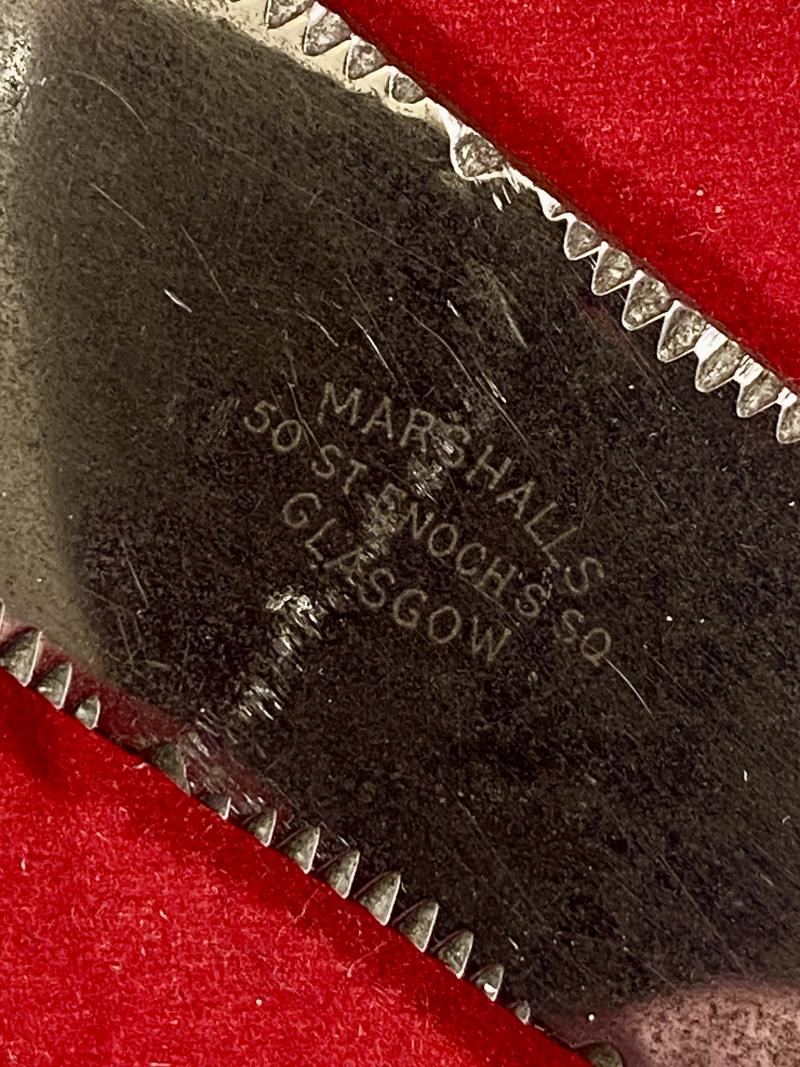 My understanding is that this type of TRUFLITE throwing knife was only made by William Rodgers of Shefield. Other examples I have seen that use this blade and TRUFLITE name, are etched with ‘I CUT MY WAY’ William Rodgers, Sheffield. Just this example isn’t?