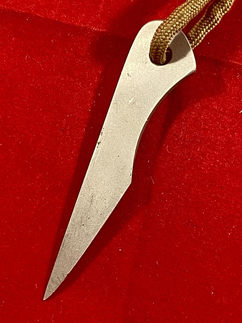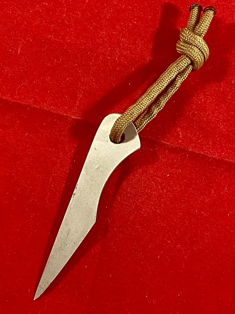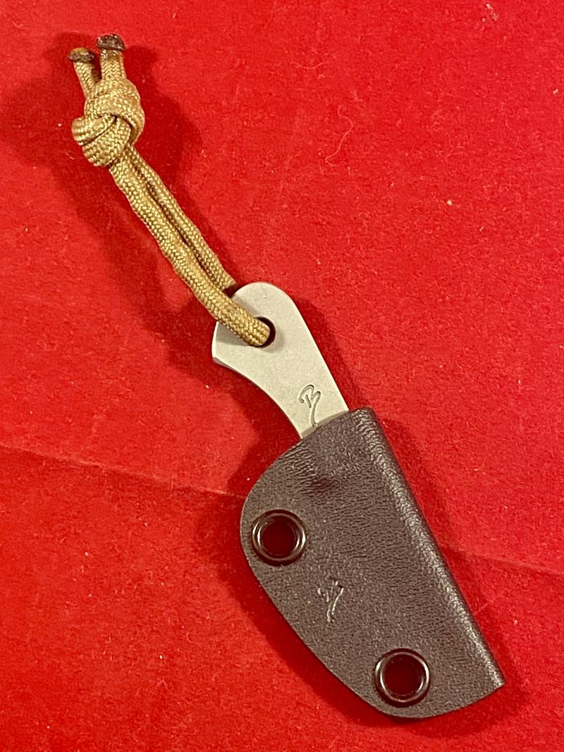 Here on offer is a small custom made Kiridashi tactical neck knife with black Kydex sheath.