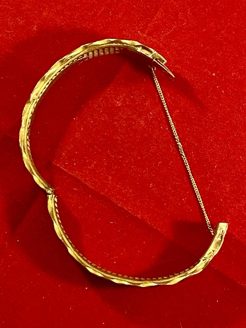 The band is hinged at one side, with the opposite side fitted with a fully working, inline release catch.