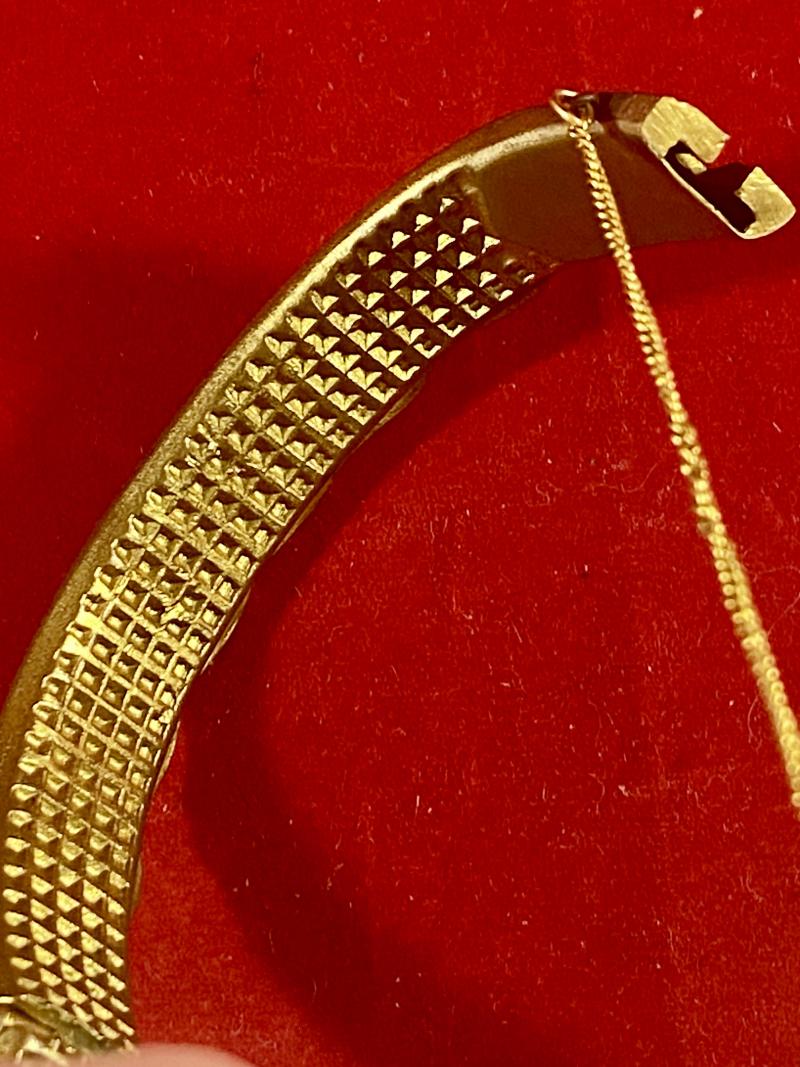 There is also a gilt wire safety chain to ensure it doesn’t just fall of your wrist when opened.