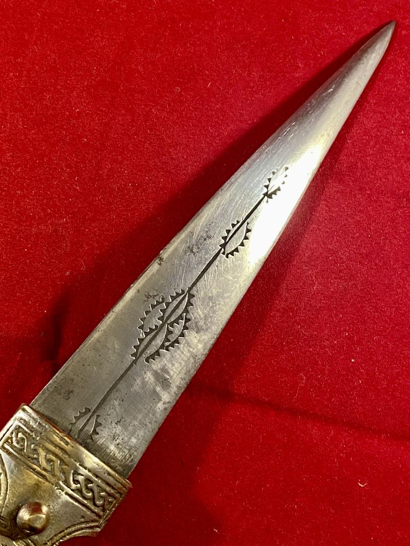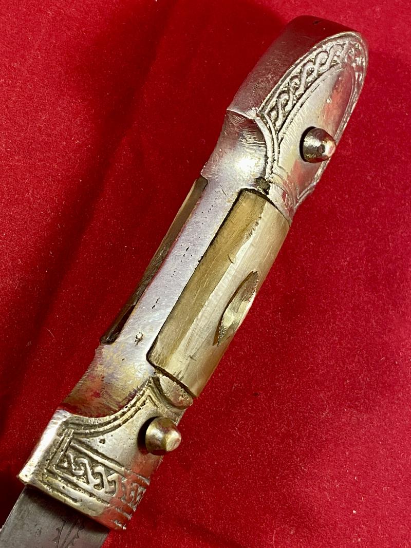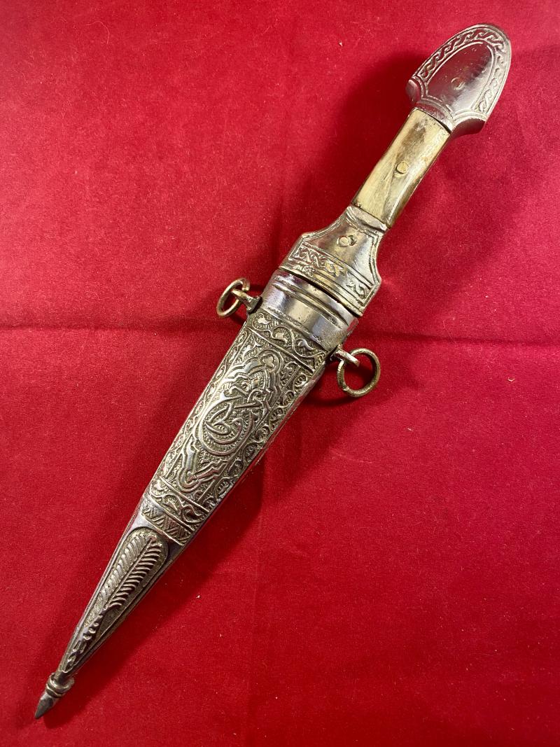 Here on offer is an 0rnate Syrian neck dagger with horn grip scales dating to the mid 20th Century.