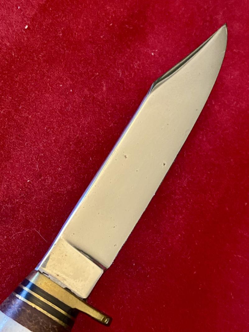 This bowie/hunting knife is in mint condition and has a 3” highly polished steel blade.